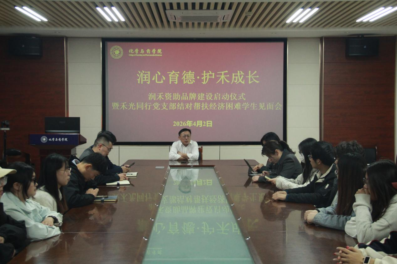 为进一步深化资助育人工作,构建全方位、精准化帮扶体系,4月2日,yl23411永利官网于化学楼会议室召开“润禾”资助品牌建设启动仪式暨禾光同行党支部结对帮扶经济困难学生见面会。会议由学院党委副书记、副院长刘兴华主持,副院长徐鲁斌、教工党支部教师代表、学生骨干党员及经济困难学生代表参加。