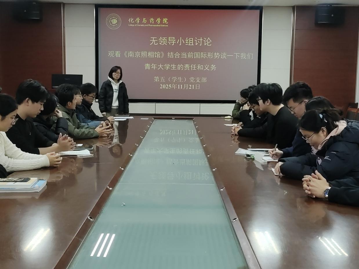 为铭记历史,传承红色基因,引导青年学生在复杂国际形势下明晰责任担当, 11月22日,yl23411永利官网第五(学生)党支部在化学楼207会议室组织开展主题党日活动,通过观看电影《南京照相馆》和无领导小组讨论相结合的形式,在沉浸式学习与深度思辨中凝聚青春奋进力量,第五党支部书记黄海红主持召开,党支部全体党员参加活动。